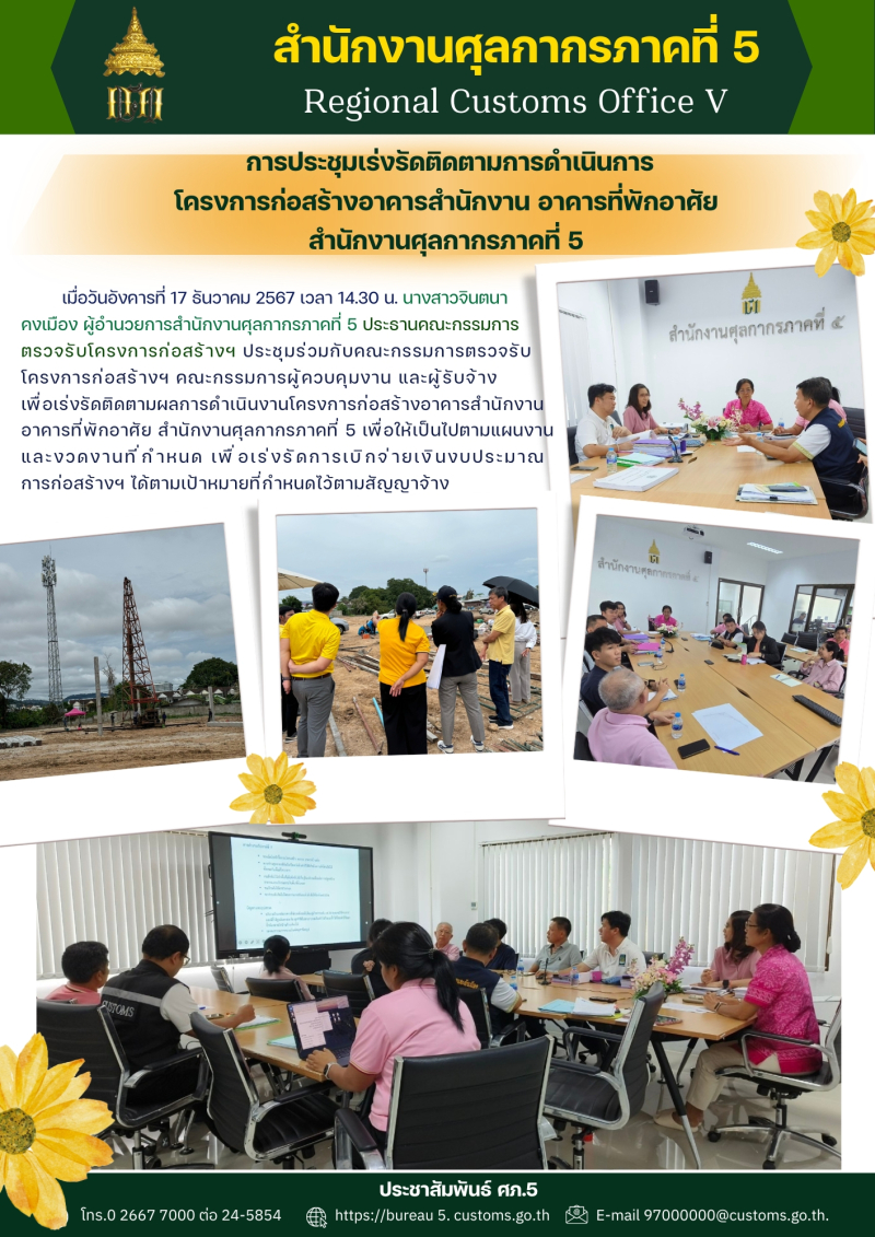 การประชุมเร่งรัดติดตามการดำเนินการโครงการก่อสร้างอาคารสำนักงาน อาคารที่พักอาศัย สำนักงานศุลกากรภาคที่ 5