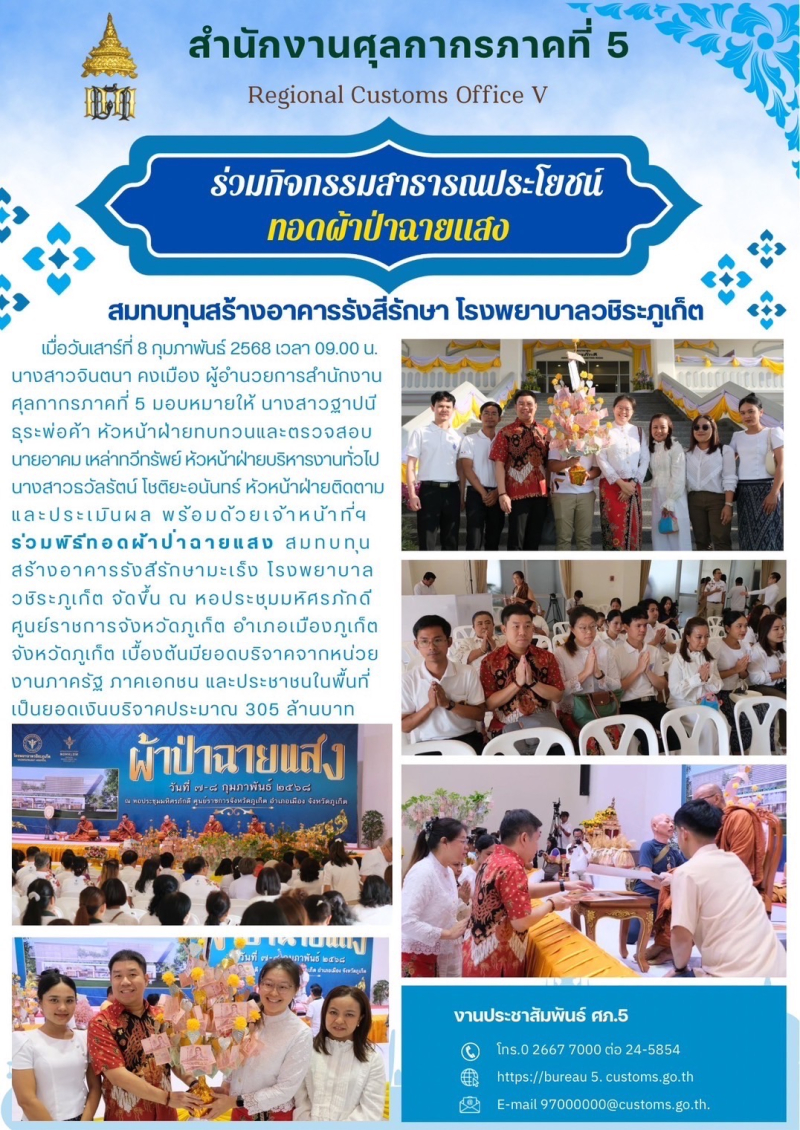 สอบถามข้อมูลเพิ่มเติมได้ที่ : สำนักงานศุลกากรภาคที่ 5