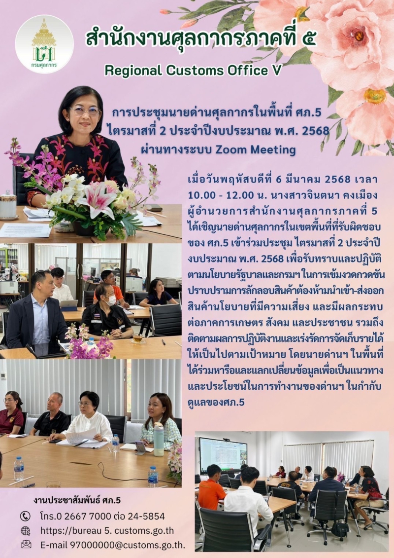 การประชุมนายด่านศุลกากรในพื้นที่ ศภ.5 ไตรมาสที่ 2 ประจำปีงบประมาณ พ.ศ.2568 ผ่านทางระบบ Zoom Meetng