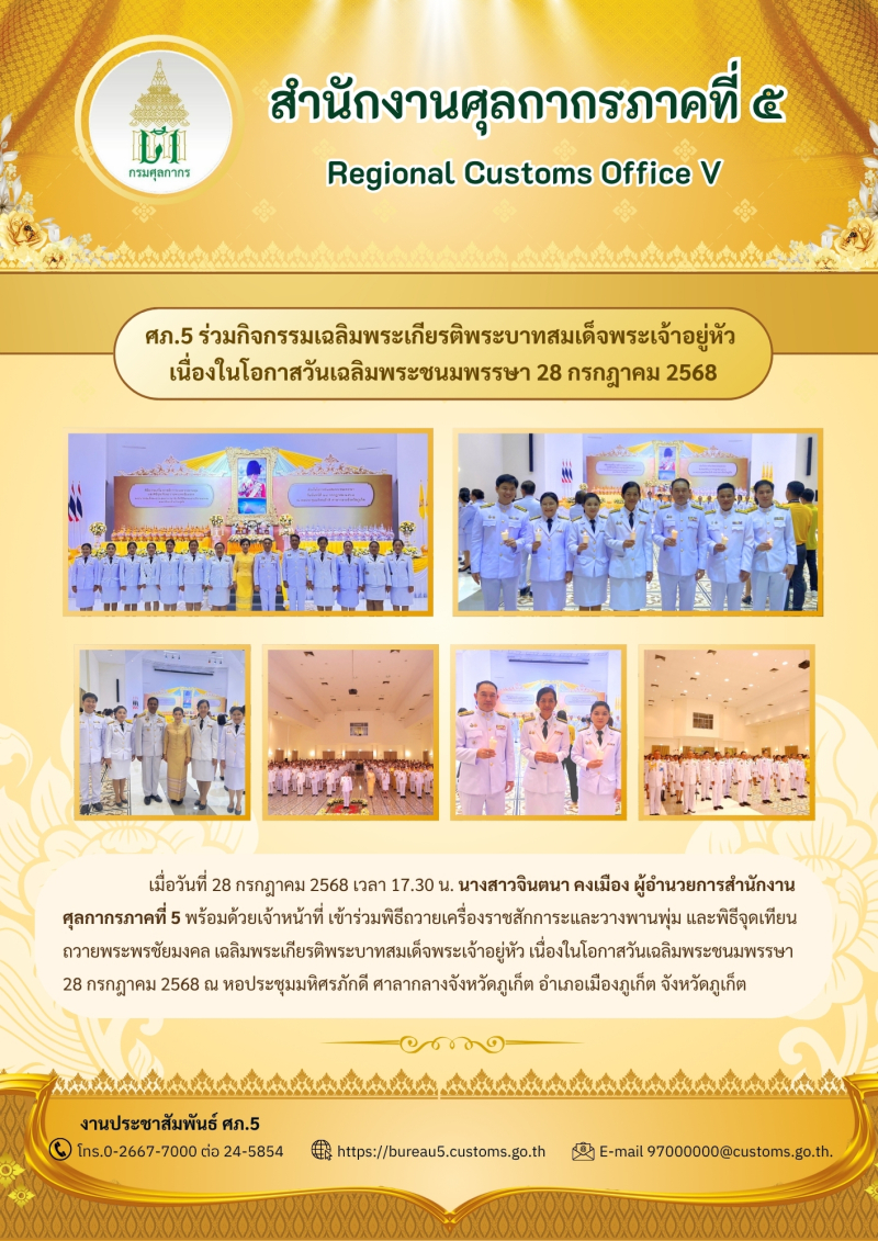 ศภ.5 ร่วมกิจกรรมเฉลิมพระเกียรติพระบาทสมเด็จพระเจ้าอยู่หัว เนื่องในโอกาสวันเฉลิมพระชนมพรรษา 28 กรกฎาคม 2568