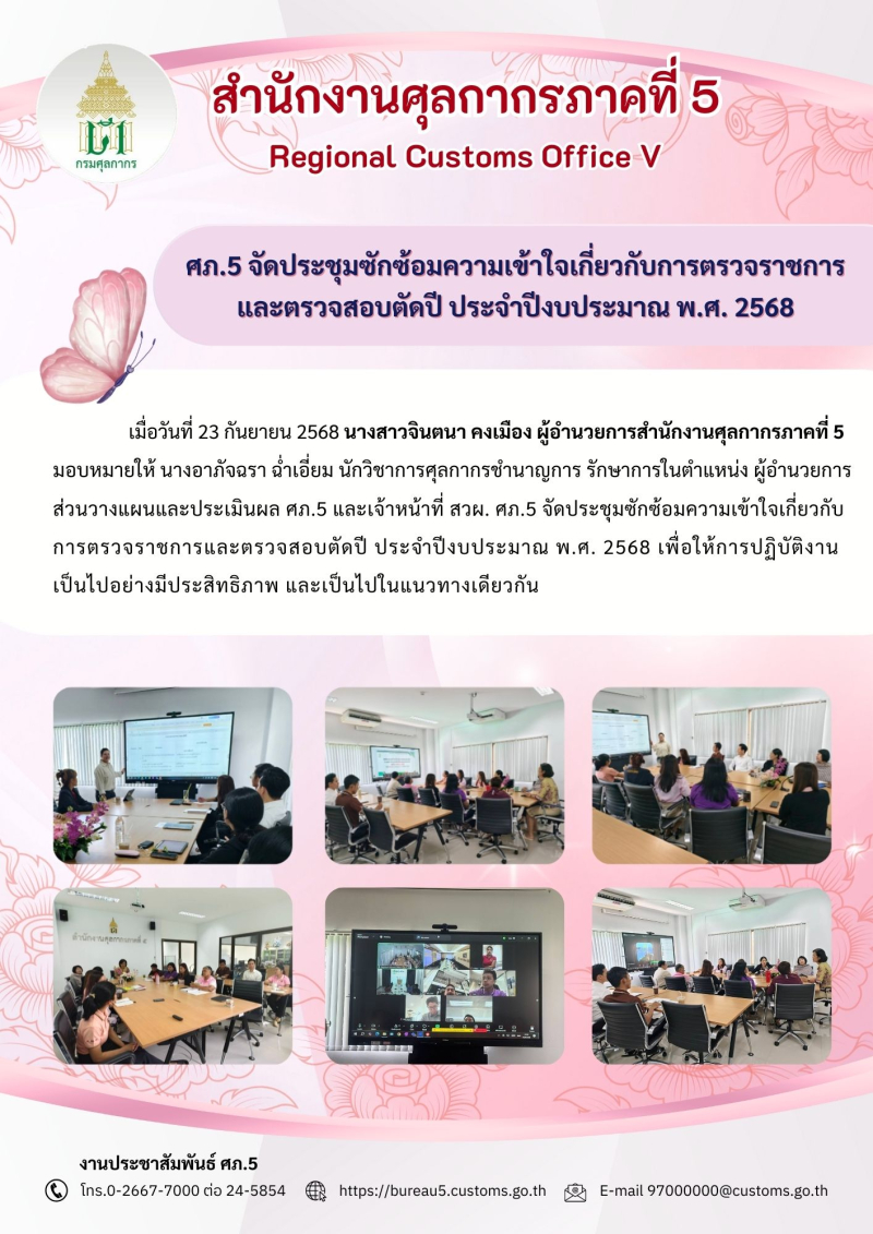 ศภ.5 จัดประชุมซักซ้อมความเข้าใจเกี่ยวกับการตรวจราชการ และตรวจสอบตัดปี ประจำปีงบประมาณ พ.ศ. 2568